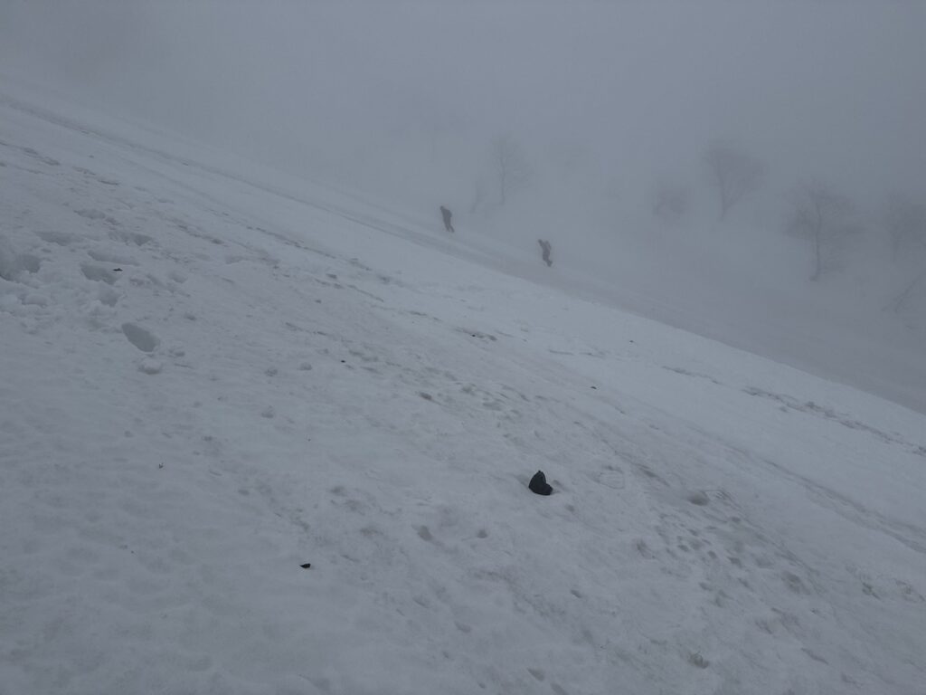 白い世界を黙々と上がります