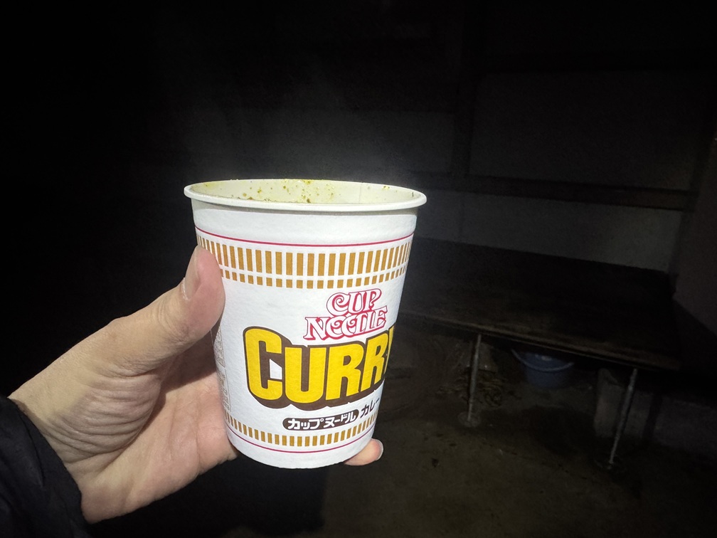 避難小屋でカップ麺