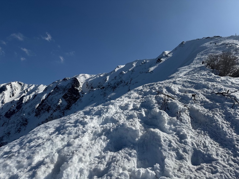 尾根部分になると傾斜が増します