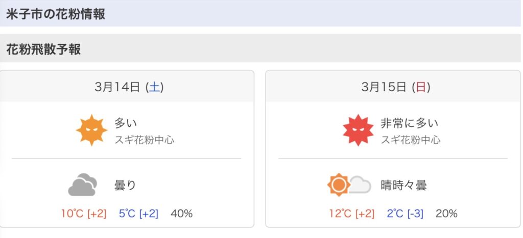 久々の花粉症のようです